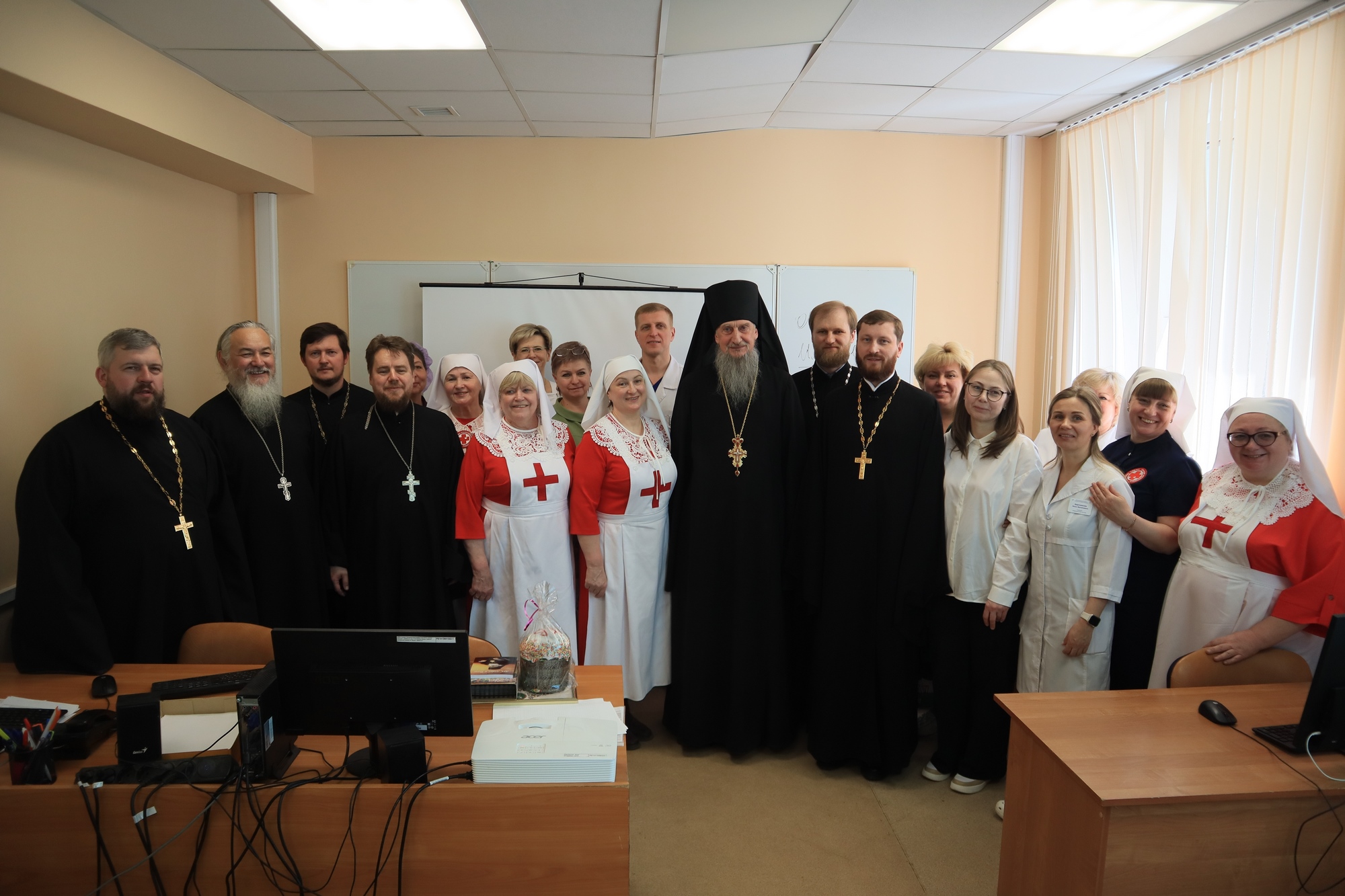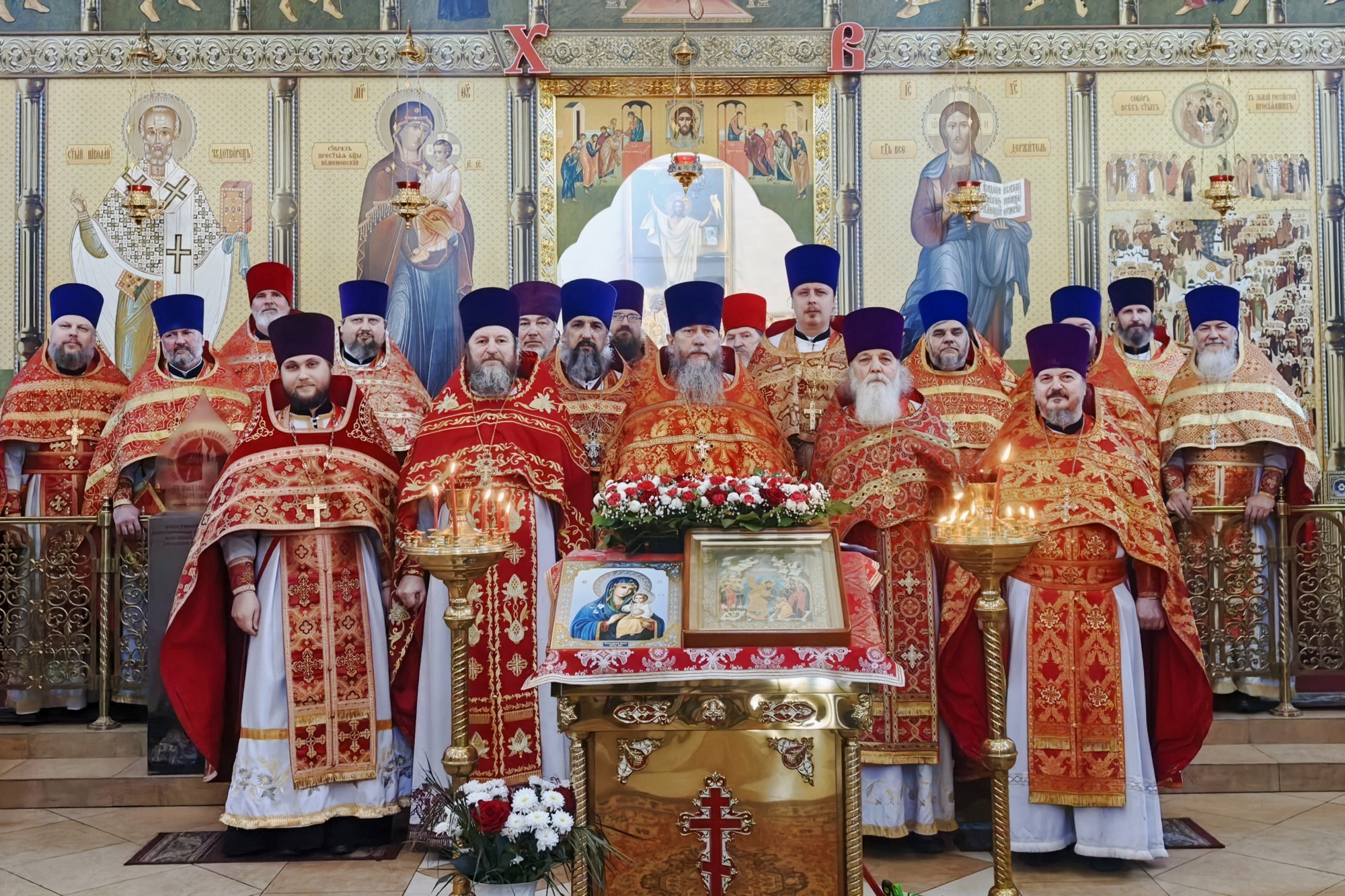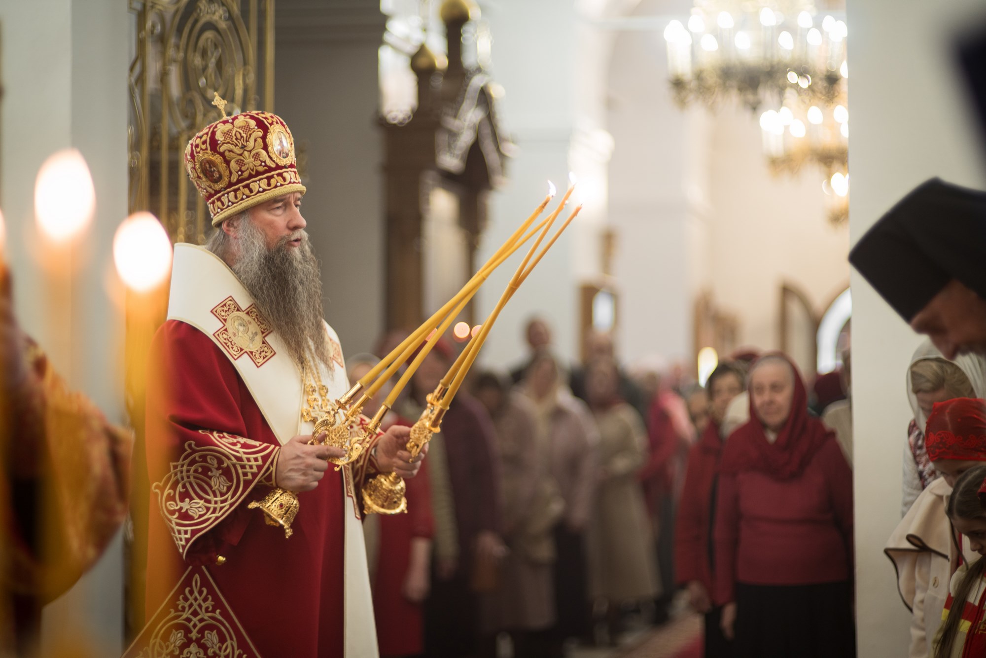 В завершение богослужения настоятель Успенского храма иерей Владимир Дудырев приветствовал епископа Кирилла и преподнёс ему от прихода памятный подарок – панагию с изображением Воскресения Христова. Затем владыка обратился к молящимся с архипастырским словом.
