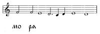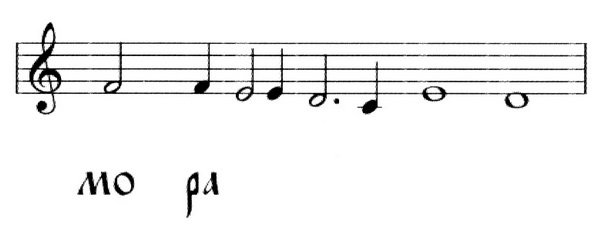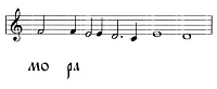 Так, для вседневных богослужений предлагается малый знаменный распев. Каждому слогу текста в нем соответствует один, иногда два звука6. Простые шаблонные образцы для пения «на глас"7 и самоподобны8, по своему происхождению восходящие к «старому» знаменному распеву