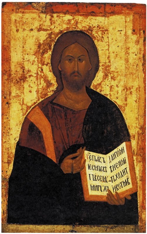 Но вот наступает новый период — эпоха Куликовской битвы, когда настроения в обществе, а вслед за ним и стиль иконописцев меняются. Классический пример иконописания данного времени — деисусный чин Благовещенского собора Московского Кремля, созданный, вероятно, Феофаном Греком и художниками его круга. При сопоставлении двух упомянутых выше икон с центральным образом деисуса — «Спасом в силах» проясняются разительные отличия. Перед нами на золотом фоне — Христос торжествующий, Христос — праведный Судия. Суд Его, еще не Страшный, но очень важный, земной, уже свершился. Безбожные агаряне побеждены в битве на Дону 1380 г., время скорбей и тесноты закончилось. Наступила «великая ослаба всему православному христианству».