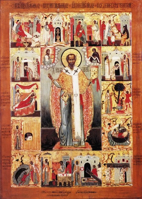 Вот несколько примеров: икона Николы Зарайского 1526 г. с 18 клеймами из Твери; вологодская икона XVI века с 16 клеймами; новгородская икона