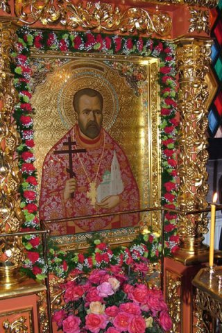 Теперь этот возрожденный из руин храм украшает золоченный киот с ликом своего святого настоятеля, пресвитера Котельниковского священномученика Вячеслава.