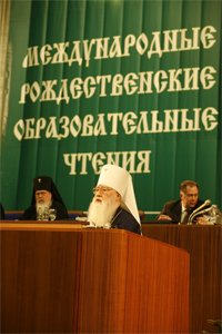 Особую роль в нашей образовательной деятельности, в том числе и в ее воспитательном аспекте, имеют Рождественские чтения. Первоначально этот форум проводился только в Москве как международный, однако с течением времени инициатива была подхвачена и на местах, во многих епархиях. Например, в Московской епархии уже в четвертый раз прошли Подмосковные образовательные Рождественские чтения, организованные при непосредственном участии Министерства образования Московской области. Надо заметить, что на уровне многих благочиннических округов такие встречи проходили и ранее. В нашей практике созывается не отдельная конференция с узким кругом участников, а наступает целый период в жизни региона. После торжественного открытия на протяжении двух-трех недель во всех муниципальных образованиях проходят конференции, семинары, круглые столы, разного рода конкурсы, концерты. Мы стремимся создать единое культурно-образовательное пространство и привлечь к максимально широкому участию в нем и взрослых, и детей. Тематика, которой мы уделяем особое внимание, ? это любовь к родному краю, труд на благо Отечества, забота о возрождении России. В конце этого года на Пятых Подмосковных Рождественских чтениях мы сосредоточим свое внимание на теме ?На путях духовно-нравственного воспитания и просвещения?. Торжественное закрытие чтений, проходящее при неизменном участии губернатора Московской области Бориса Всеволодовича Громова, ежегодно собирает на стадионах несколько тысяч участников.