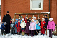 16 октября собор Рождества Богородицы Орехово-Зуево посетили маленькие гости дети из православной группы детского садика № 73 города. Ребятишек встретил священник Андрей Зозуля, ответственный по социальному служению и благотворительности в Орехово-Зуевском благочинии. Отец Андрей провел экскурсию по собору, рассказал малышам об иконах, богослужении и о многом другом. Показал икону святого великомученика Пантелеимона и купель, где крестят взрослых и детей, провел детей на клирос. Затем, священник сводил ребят к храмовому некрополю, поведав им о похороненных здесь строителях и настоятелях собора Рождества Богородицы. После рассказа об истории храма, отец Андрей рассказал о его сегодняшней жизни: о детской площадке, о парковой зоне, о колоколах, которые еще не подняты на звонницу. Дети, послушав интересный рассказ, немного поиграли в снежки, а затем их пригласили в трапезную, где малышей угостили чаем, конфетами и пирогами.