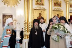 Дорогие братия и сестры! Мы сделали для вас все, открыв эту великую святыню, поэтому хочется настойчиво пожелать, чтобы не пустовал этот храм, чтобы вы его чаще наполняли как сегодня, чтобы не были пустыми ваши сердца, не были опустошенны ваши души, чтобы любовь Божия, молитва наполнили их. С молитвой, верой, мы преодолеем любые нестроения, любые испытания, любые болезни и трудности, потому что с нами Господь, Пречистая Матерь Божия, святой Архистратиг Божий Михаил и всё Небесное воинство. Их благословение, благодать и милость да пребывают с вами на многая и благая лета!»