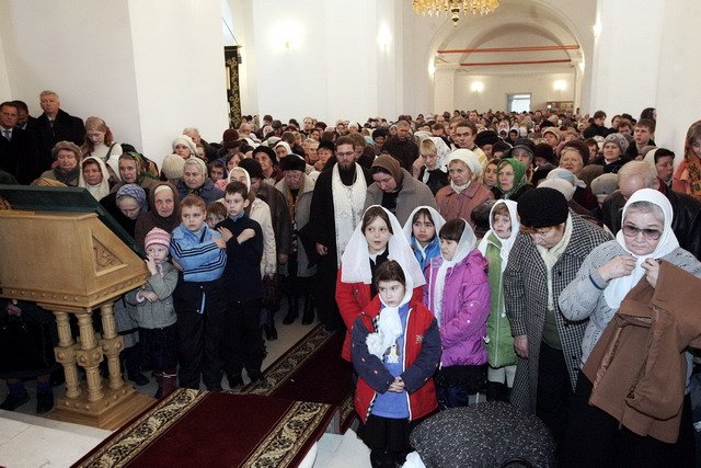В 10 часов в главном алтаре храма началась Божественная литургия. Радовало обилие причастников: восемь священников принимали исповедь у желающих приступить к Таинству.
