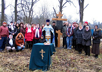 7 декабря на месте разрушенного храма и в утверждение будущего строительства был освящен и установлен четырехметровый деревянный поклонный крест. Чин освящения совершил священник Евгений Хмыров, настоятель будущего храма, при участии настоятеля Христорождественской церкви села Сенино Чеховского района священника Василия Евпатова.