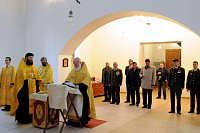 В 10 часов утра благочинным церквей Красногорского округа, настоятелем Успенского храма города Красногорска протоиереем Константином Островским в сослужении настоятеля храма святого благоверного князя Даниила Московского в Нахабине священника Олега Холзинева, являющегося членом Епархиального отдела по связям с Вооружёнными силами и правоохранительными учреждениями от Красногорского благочиннического округа, был отслужен праздничный молебен в храме благоверного князя Даниила.