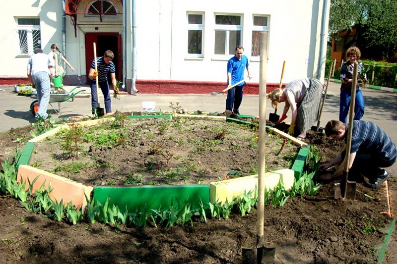 По благословению настоятеля Троицкого собора протоиерея Александра Ганабы были выделены средства на приобретение и доставку рассады. Члены общины озеленили и украсили цветами четыре площадки для детей, центральную клумбу и дорожку от неё до ворот главного входа, а также отдельно стоящие клумбочки, разбросанные по всей территории. Почти пять часов непрерывного труда, не взирая на палящее солнце и духоту дня, не угасили задора участников общины во время посадки, и теперь 600 штук цветочных горшочков, где уже расцвели маргаритки, колеусы, виолы и цинерарии, красуются под окнами малышей, доставляя им радость.