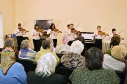 Концерт состоял из музыкальных и поэтических номеров, а особенным украшением его стало выступление ансамбля скрипачей «Сувенир» Львовской поселковой детской школы искусств, которые исполнили для ветеранов песни и вальсы военных лет.