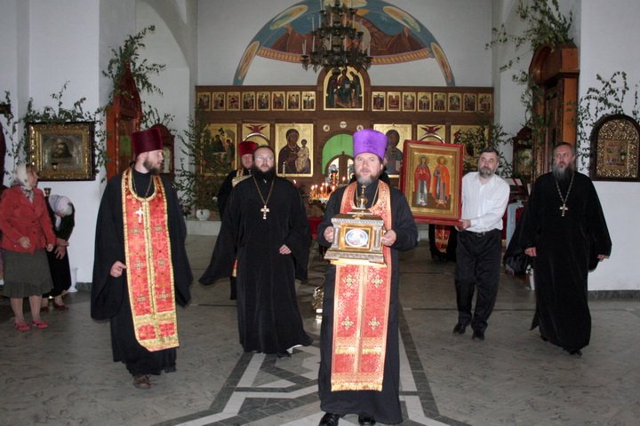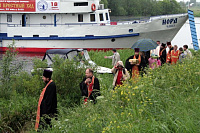 Участники крестного хода во главе с секретарем Тверского епархиального управления протоиереем Павлом Сорочинским были встречены в устье рек Волги и Дубны духовенством храмов города, представителями администрации и многочисленными прихожанами. После высадки на берег крестный ход со святыней под радостный звон колоколов проследовал в храм Похвалы Богородицы г. Дубны, где духовенством