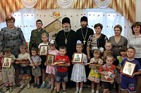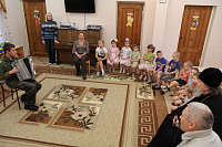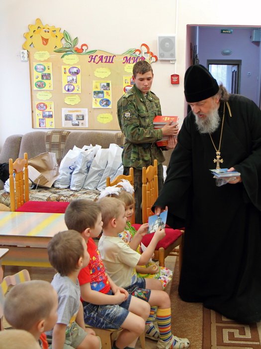 Дети очень тепло встретили монахов и кадетов: кинулись друзьям на встречу, обняли — в глазах детей светилась неподдельная радость. Игумен Игнатий сердечно приветствовал собравшихся в зале ребят, рассказал им о монашеской жизни, о празднике в честь Иверской иконы Божией Матери. Кадеты устроили для детей праздничный концерт: играя на баяне, пели детские песенки, знакомые каждому с детства. Игумен Игнатий вместе со своей братией устроил несколько конкурсов с призами. На память об этой встрече игумен Игнатий вручил детям Евангелие, иконы, открытки и гостинцы.