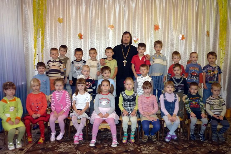 На встрече священнослужитель рассказал ребятам о сотворении мира, об иконе «Спорительница хлебов», прочитал краткие молитвы о детях и окропил присутствующих святой водой. В подарок от храма для библиотеки детского сада передали детскую православную литературу и календари.