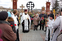 Панихиду по невинно-убиенным землякам соборно совершили священнослужители Анно-Зачатьевского храма города Чехова. За богослужением молились более 70-и родственников репрессированных жителей Чеховской земли, а так же прихожане Зачатьевского храма. По завершении заупокойной службы участники крестного хода возложили цветы и венки к подножию мемориала.