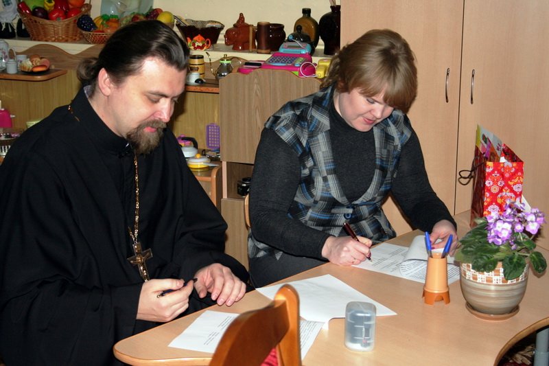 Затем в детском саду № 9 города Волоколамска, где много лет успешно действует группа православного воспитания, окормляемая отцом Константином, между этим дошкольным учреждением и благочинием был подписан Договор о совместной работе, призванный систематизировать накопленный опыт православного воспитания и расширить рамки нравственной работы с детьми. В подписании документа приняли участие благочинный протоиерей Константин Попов, начальник УСО