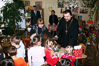 Отец Константин вручил детям и воспитателям по иконке прп. Иосифа Волоцкого. Закончилась встреча дружеским общим чаепитием.