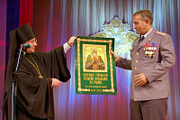 От имени духовенства Чеховского округа работников полиции поздравил ответственный по взаимодействию с Вооруженными силами и правоохранительными учреждениями Чеховского благочиния, клирик Анно-Зачатьевского храма города Чехова иеромонах Феодосий (Поддубоцкий). На молитвенную память начальнику Чеховского УВД полковнику полиции А. В. Большакову он вручил подарок от Чеховского благочиния, а сотруднику Чеховского отдела по безопасности дорожного движения Т. И. Жуковой благословенную грамоту митрополита Ювеналия.