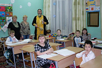 В тот же день клирик храма иерей Виктор Нестеров поздравил с праздником Богоявления учителей и учащихся Королевской