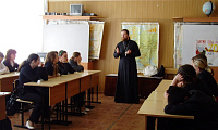 27 апреля в школе № 22 микрорайона Текстильщик г. Королева прошла встреча старшеклассников с клириком храма блаженной Матроны пос. Любимовка иереем Никитой Потаповым. Перед началом беседы со школьниками отец Никита поздравил директора школы