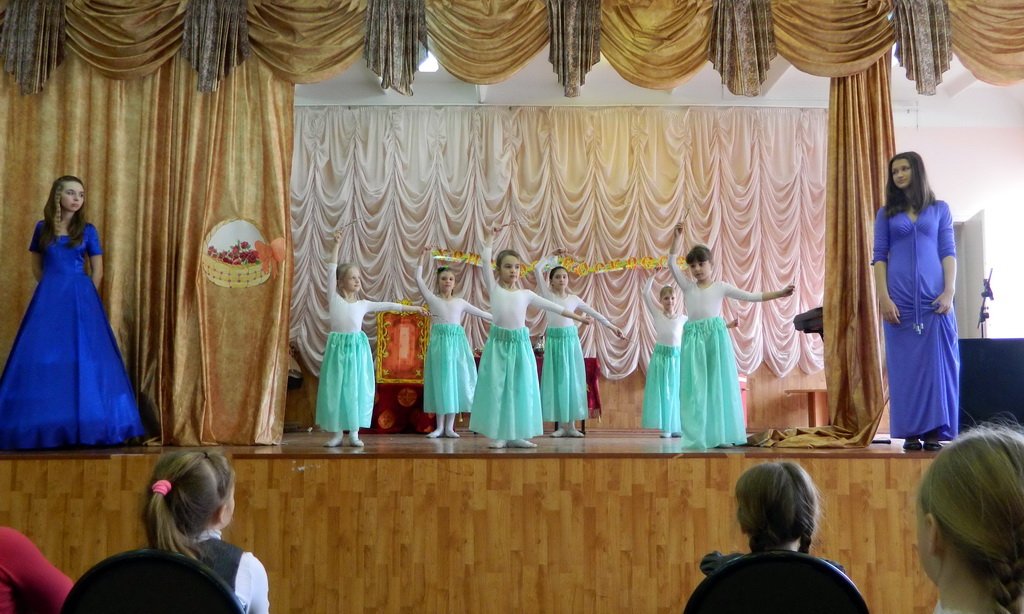 Ребята подготовили праздничное представление, включающее песни, стихотворения, вальс маленьких вербочек, песню цветов и сказку «Мудрый царь». В начале представления ведущие рассказали детям о Пасхе, о Вербном воскресении. Зрители были задействованы в представлении, участвуя в игре «Что в кулич положим мы?», предложенной ведущими. Самым интересным в выступление стала, конечно, сказка. Она учит быть добрыми, милосердными, скромными, осуждает стремление собирать сокровища на земле. Завершилось представление радостной пасхальной песней.