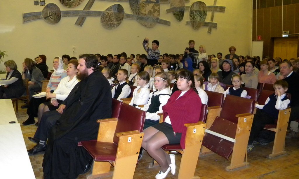 В зрительном зале собрались учащиеся колледжа, преподаватели и родители выступающих, в числе приглашенных гостей были настоятель Крестовоздвиженского храма села Татаринцево игумен Фаддей (Шавернев) и настоятель Покровского храма села Боршева иерей Алексий Авдокушин, а также Ольга Авдокушина — директор воскресной школы Покровского храма вместе со своими учениками.