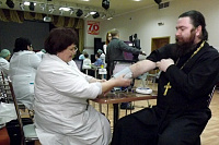 В день сдачи люди стали собираться задолго до начала. Желающих стать донорами пришло огромное количество. Была и молодежь, и зрелые люди, и даже пожилые. В кровосдаче приняли участие и клирики Богородского благочиния. Координировал работу протоиерей Владимир Владимиров и волонтер Долматова Марина, вместе со своими помощниками из благотворительного фонда «Счастливые дети». Кровь принимали специалисты областной станции переливания крови.
