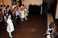 Дети и взрослые весело провели время: угощались блинами с чаем, участвовали в различных конкурсах и викторинах с призами и подарками, играли на свежем воздухе. На прощание дети воскресной школы подарили гостям гостинцы.