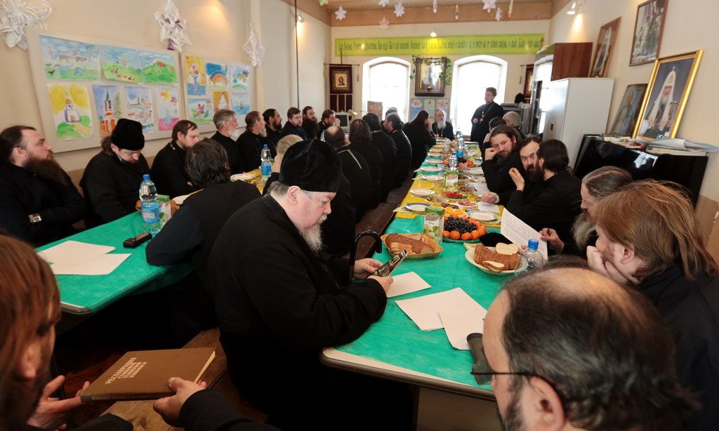 Были обсуждены текущие организационные вопросы жизни благочиния. В заключение состоялась братская трапеза и сделана общая фотография на память. В собрании приняло участие 37 клириков
