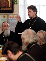 Затем благочинный священник Александр Колесников довел до сведения присутствующих последние циркуляры из Епархиального управления и материалы Епархиального совещания. В ходе обсуждения данных митрополитом Ювеналием поручений и разъяснений были заслушаны выступления ответственных в благочинии по каждому направлению церковной деятельности о проведенной и предстоящей работе. Благочинный священник Александр Колесников дал всем ответственным конкретные задания и указания по продолжению работы.