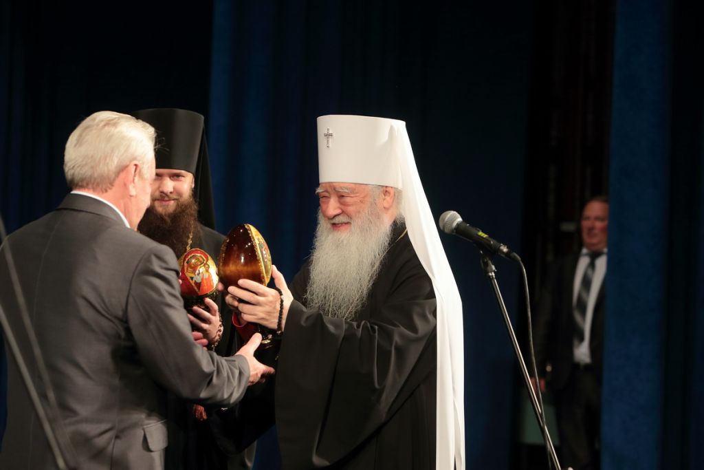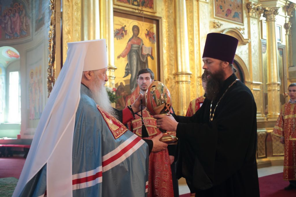 Примите от нас этот пасхальный дар, владыка, с самыми лучшими пожеланиями — здоровья, благополучия, духовной радости и всесильной помощи Божией на всё Ваше архипастырское служение! Христос Воскресе!»