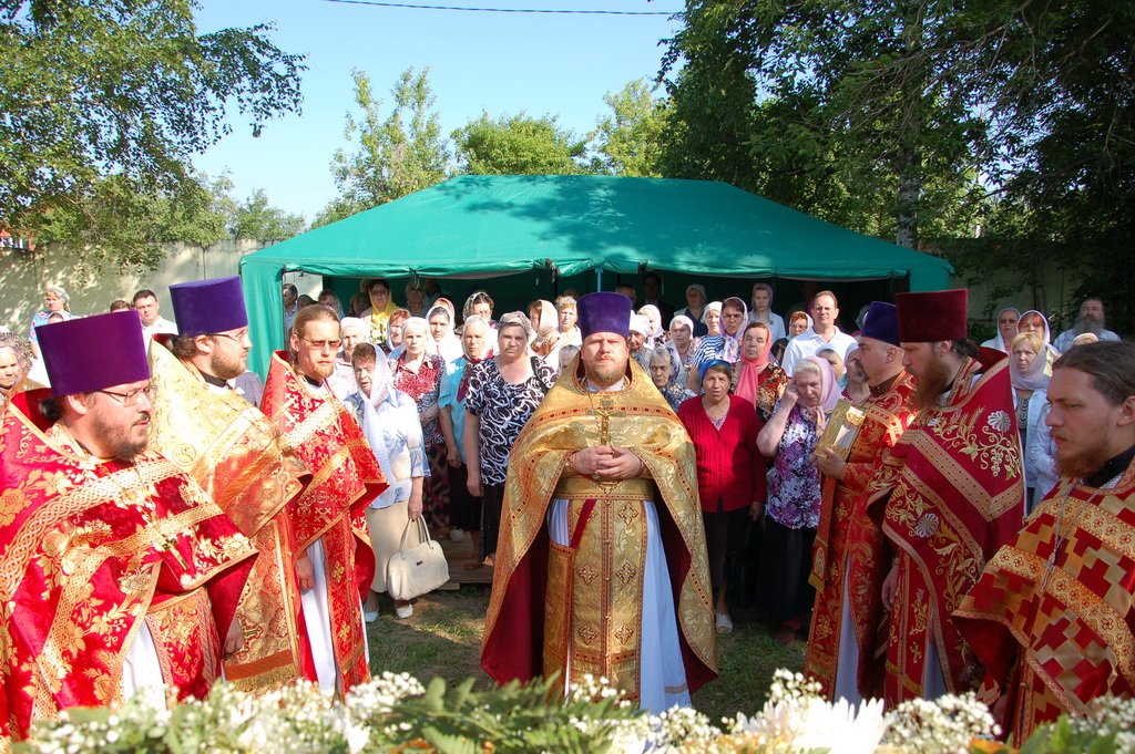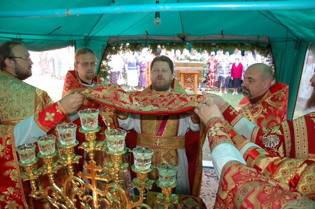 Временный больничный храм не смог вместить молящихся, желающих быть на праздничном торжестве, поэтому было принято решение совершить богослужение на месте, где будет построен большой храм. Подготовить все условия для богослужения на улице приходу помогла администрация больницы, а так же муниципальные власти города Чехова.