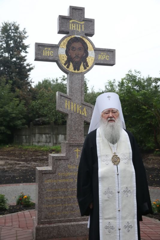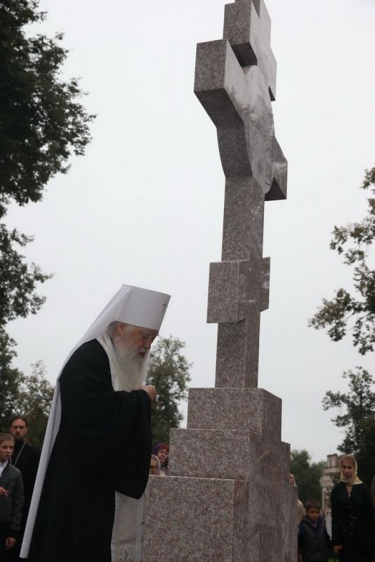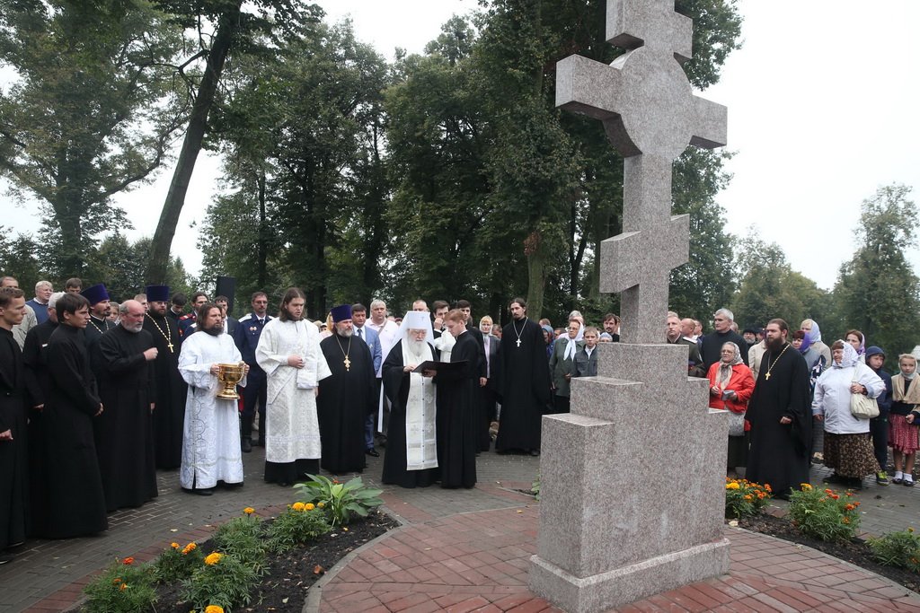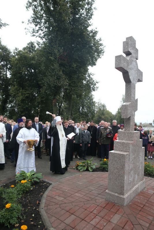После общего снимка все направились в парк, расположенный неподалеку от собора, где Его Высокопреосвященство освятил установленный в память о пострадавших в годы гонений Каширских новомучеников крест.