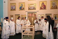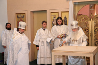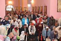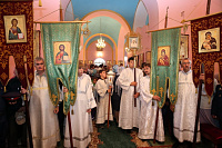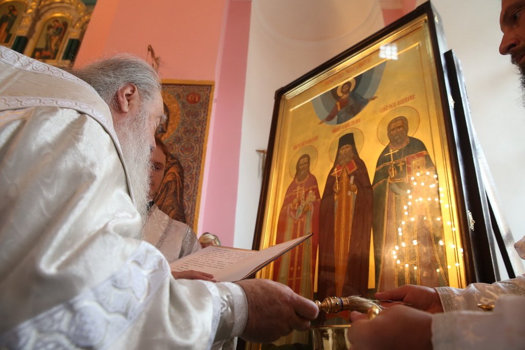 По завершении Литургии Владыка освятил икону новомучеников Каширских — священников, которые служили на Каширской земле и претерпели от богоборцев мучения в период гонений на Русскую Церковь. Затем Владыка обратился ко всем с приветственным словом: