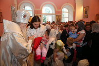 Мы сейчас продолжаем праздновать великий праздник Преображения Господня. И хочется пожелать, чтобы через молитву, через милосердие, через добрые дела преображались наши души, чтобы мы духовно возрождались и совершенствовались. И особенно хочется пожелать в начале нового учебного года, который начнется у нас в этом году второго сентября, в понедельник, чтобы совместными усилиями священнослужителей, родителей и педагогов воспитывались дети в духе Православной веры и добрых делах, чтобы из них не выросли новые богоборцы, чтобы они были последователями Господа и Спасителя нашего.