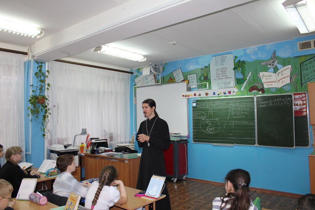 13 ноября в средней общеобразовательной школе № 16 г. Орехово-Зуево состоялась встреча члена Миссионерского отдела священника Виктора Гавриша, настоятеля храма блаж. Матроны Московской пос. Верея, с учениками 4-х классов. В ходе оживленной беседы были затронуты такие важные вопросы, как умение прощать обиды, говорить правду, преодолевать свой гнев.