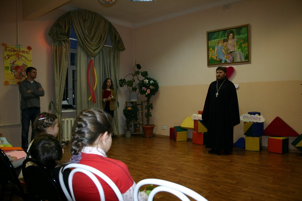 В пятницу, 22 ноября, в химкинском реабилитационном центре для несовершеннолетних прошли праздничные мероприятия, посвященные дню матери. Перед началом концерта с пастырским словом выступил и поздравил всех собравшихся на празднике клирик Богоявленского храма г. Химки священник Николай Хиров.