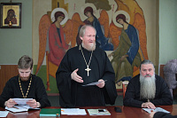 Далее на собрании выступили ответственный отдела религиозного образования и катехизации священник Димитрий Поповский (об организации катехизаторской деятельности на приходах), ответственный миссионерского отдела священник Димитрий Третьяков (о миссионерской работе и практике распространения