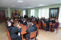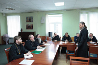 В конце собрания прошел пастырский семинар «Психология в современном мире». На вопросы священнослужителей ответила психолог консультации «Семейное благо» при храме в честь иконы Божией Матери «Живоносный источник» г. Москвы