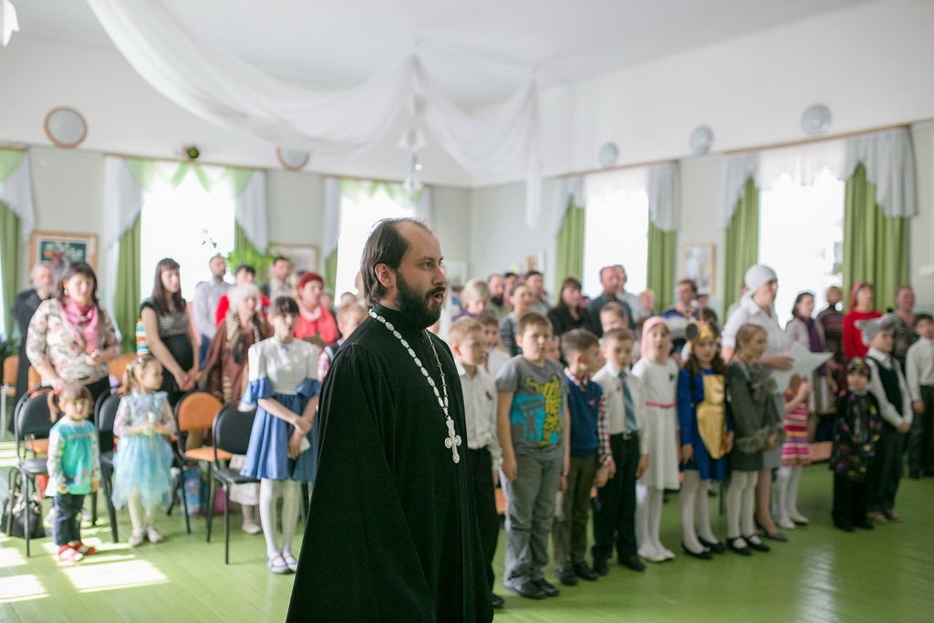 Днем 20 апреля в актовом зале Детской школы искусств в Ступино прошел пасхальный концерт воскресной школы «Вертоград» храма Всех святых, в земле Российской просиявших. Участников и гостей праздника поздравили благочинный Ступинского церковного округа протоиерей Евгений Ряполов, руководитель воскресной школы священник Георгий Шмарин и родители.