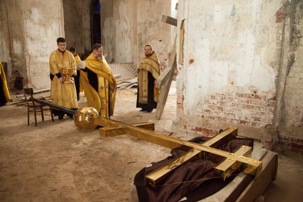 27 августа благочинный церквей Каширского благочиния протоиерей Виталий Коценко возглавил соборное служение и освящение крестов на купола Преображенского собора г. Каширы.