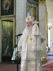 Мы, архипастыри и пастыри, приехавшие сегодня из разных мест нашей земли, благодарны владыке Варсонофию, что он с любовью нас принимает, благословляет помолиться в этом величественном соборе и помянуть нашего духовного отца. И сейчас мы совершим панихиду и посетим кладбище, где покоится блаженно почивший митрополит Никодим, и вознесем свою сердечную молитву о упокоении его души, чтобы Господь вселил его там, где нет уже ни болезни, ни печали, ни воздыханий, но прибывает жизнь бесконечная в Царствии Небесном. Аминь».