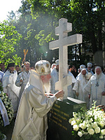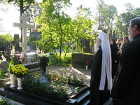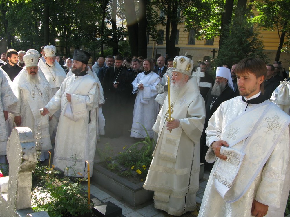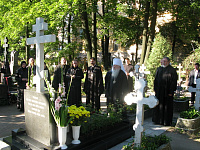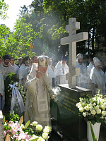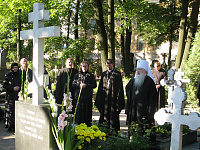 По окончании панихиды все участники богослужения Крестным ходом прошли на Никольское кладбище монастыря, где у могилы почившего архипастыря митрополит Ювеналий возложил венок и отслужил заупокойную литию. По традиции многих лет в окончании молитвенного поминовения хор пропел Кондак праздника Успения Пресвятой Богородицы и седален «Апостоли от конец земли».