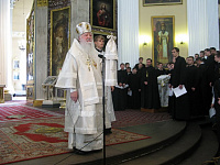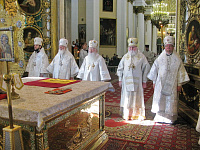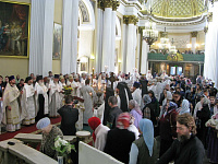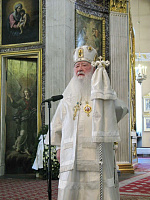 После сугубой ектении митрополит Ювеналий прочитал молитву о мире на Украине. На заупокойной ектении было совершено поминовение почившего митрополита Никодима.