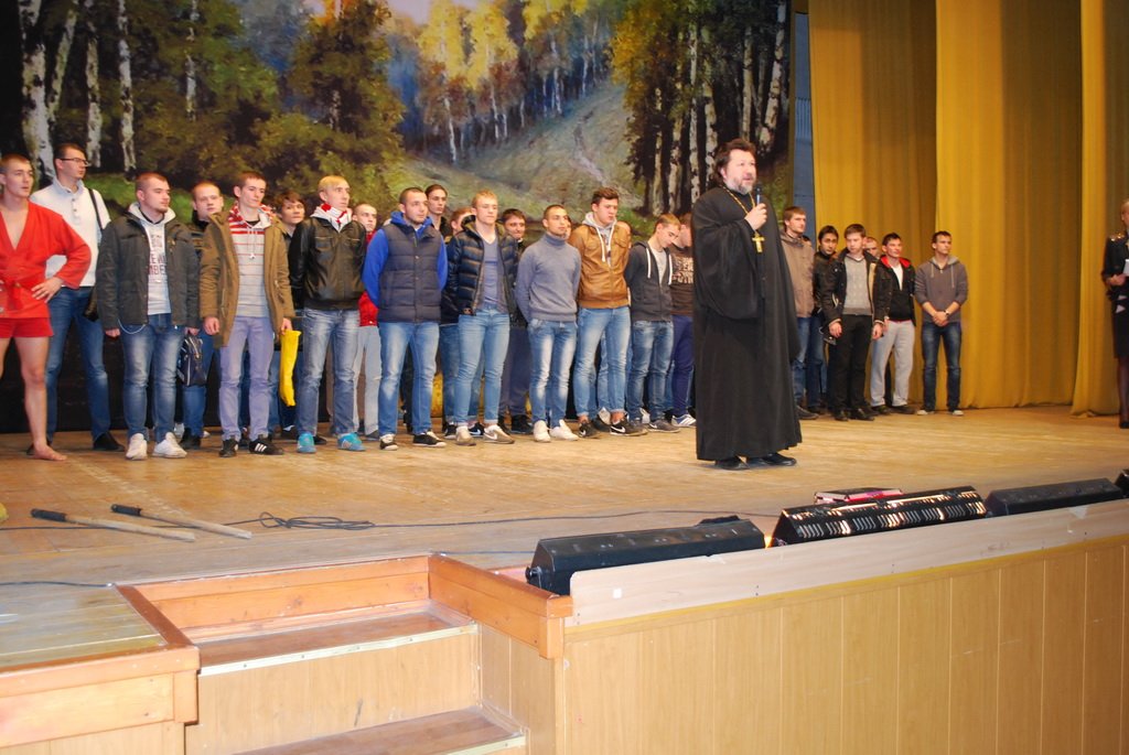 17 октября на территории офицерских курсов «Выстрел» прошел районный День призывника, организованный администрацией Солнечногорского района совместно с отделом военного комиссариата по Солнечногорску. К призывникам и старшеклассникам обратились начальник управления региональной безопасности районной администрации Александр Донсков, начальник отдела военного комиссариата Московской области по Солнечногорску и Солнечногорскому району Андрей Наумов, ветераны Великой Отечественной войны, а также ответственный за работу с Вооруженными силами и правоохранительными учреждениями в Солнечногорском благочинии священник Александр Азаров.