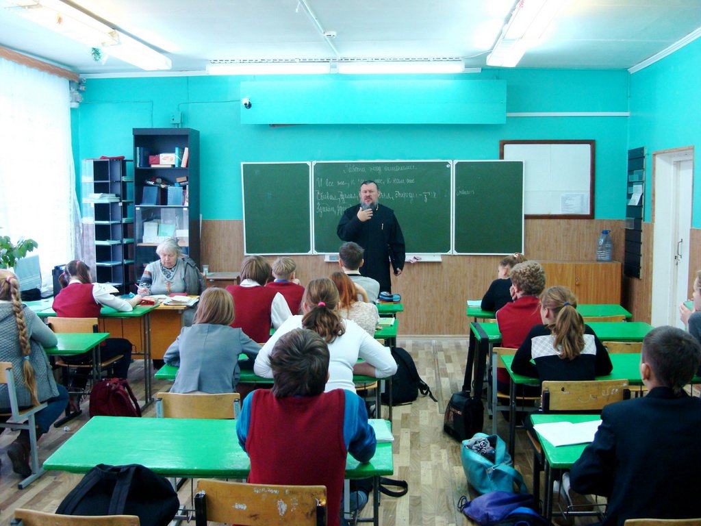 27 ноября, в рамках XII районных образовательных Рождественских чтений, прошла встреча настоятеля храма Иоанно-Златоуста протоиерея Сергия Зиброва с учащимися 7, 8-х классов гимназии № 1 г. Воскресенска. На лекциях были рассмотрены вопросы о любви к ближнему, о терпимости и взаимном уважении. На торжественной части мероприятия отец Сергий вручил золотую медаль выпускнице гимназии.