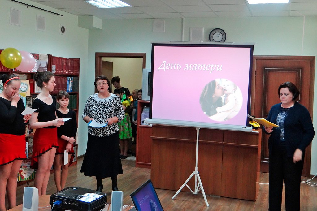 30 ноября в православном духовно-просветительском центре «Благовест» при районной библиотеке семейного чтения состоялся утренник, посвященный Дню матери. В нем приняли участие юные читатели со своими родителями и бабушками. Ведущие праздника сотрудники центра С. А. Иванова и Т. В. Воронкова рассказали о том, как почитается на Руси Пресвятая Богородица, какое место в жизни православного человека занимает мама, и как отмечают День матери в разных странах мира. Дети, пришедшие на утренник, приготовили для мам и бабушек рисунки и стихи. Завершился утренник викториной «Волшебные слова».