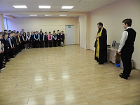 3 февраля клирик Казанского храма г. Дмитрова священник Петр Яронов посетил школу № 1, где совершил водосвятный молебен и провел беседу с учащимися.