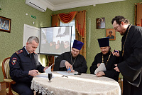 10 февраля состоялось подписание соглашений Дмитровского и Рогачевского благочиний с воинскими частями и правоохранительными учреждениями, расположенными на территории Дмитровского района. Мероприятие началось с молебна в Успенском соборе г. Дмитрова, который совершил благочинный церквей Дмитровского округа протоиерей Афанасий Чорногуз в сослужении благочинного Рогачевского церковного округа священника Алексия Сурикова и духовенства обоих благочиний, задействованных в духовном окормлении силовых подразделений. В мероприятии приняли участие глава Дмитровского района