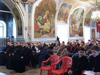 21 марта в Спасском храме поселка Андреевка состоялась встреча с членом Синодальной комиссии по канонизации святых Русской Православной Церкви, настоятелем Казанского храма г. Реутова протоиереем Максимом Максимовым, который рассказал собравшимся о мученичестве согласно учению Священного Писания. В мероприятии приняли участие благочинный Солнечногорского округа протоиерей Антоний Тирков, благочинный Люберецкого округа протоиерей Димитрий Мурзюков, духовенство храма, члены молодежного приходского движения и прихожане. Встреча прошла в канун празднования памяти священномученика Алексия (Смирнова), который жил и служил в Знаменском храме деревни Голубое. После встречи священнослужители совершили всенощную в память новомученика Солнечногорской земли в Знаменском храме.