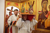 Мое сердце сегодня переполнено великой радостью общения с вами, но не хочу злоупотреблять вашим вниманием, потому что вы с раннего утра находитесь здесь, как говорят „на ногах“, устали, но не так часто это бывает, дорогие братия и сестры, поэтому хочется вновь и вновь выразить и отцу Иоанну, и всем вам, и нашим благотворителям горячую сердечную благодарность за то, что вы воздвигли этот храм нашему великому Богу.