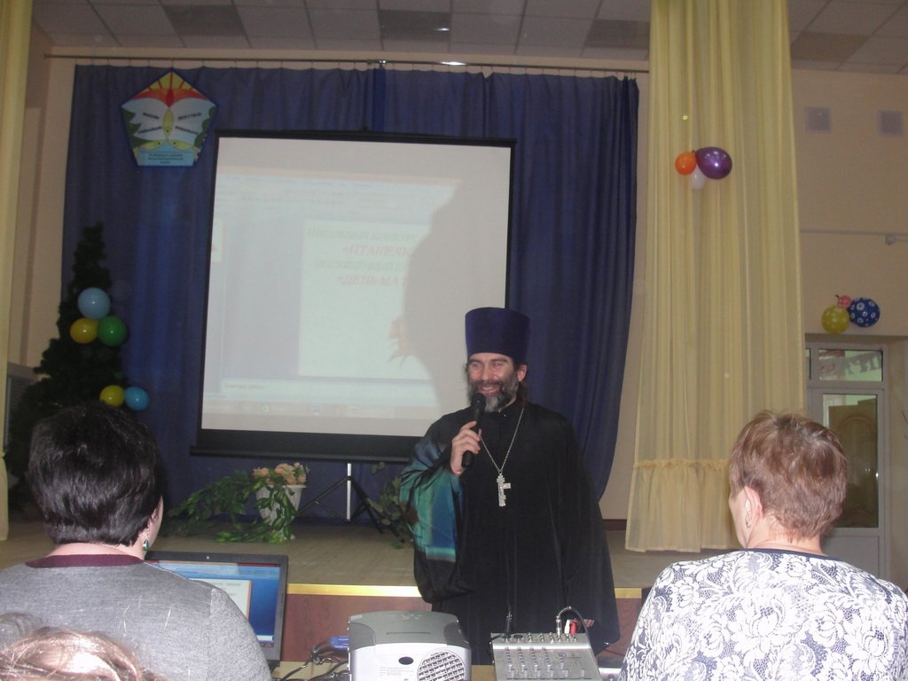 4 декабря в средней школе поселка Рыбное прошел конкурс песни, посвященный Дню матери. Одним из членов жюри был священник Александр Юденко.